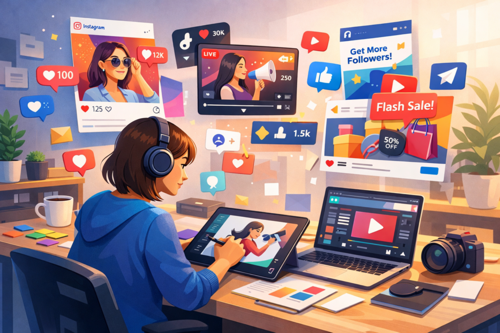 We specialize in digital marketing, social media management, website development, SEO, Shopify development, and video editing delivering customized solutions tailored to each client’s unique goals. By combining creativity, data, and technology, we build strategies that attract attention, engage audiences, and convert visitors into loyal customers.